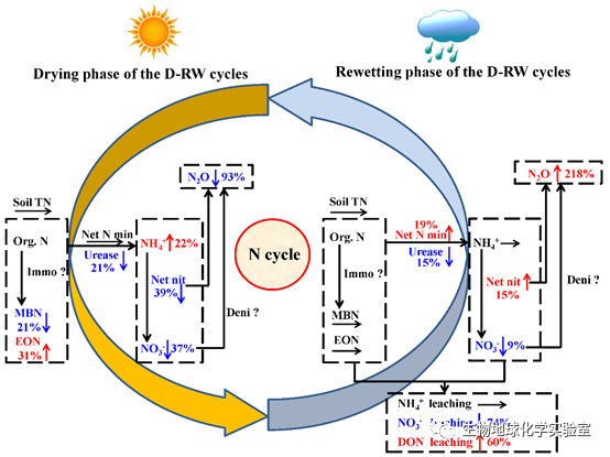氣候變化會引起降水格局發(fā)生改變,從而導致干濕交替模式發(fā)生改變,進而可能會影響陸地生態(tài)系統(tǒng)中土壤氮、磷循環(huán)。土壤干旱會抑制土壤微生物活性,并且隨著干旱強度的增加,土壤微生物和根系可能會死亡。隨后的再濕潤會通過破壞土壤結構、從土壤礦物表面解吸有機和無機氮和磷、對土壤微生物施加滲透壓以及改變根系生長等途徑影響土壤養(yǎng)分循環(huán)。由于土壤氮和磷在陸地生態(tài)系統(tǒng)中起著至關重要的作用,因此全面了解其對干濕交替的響應變得越來越重要。