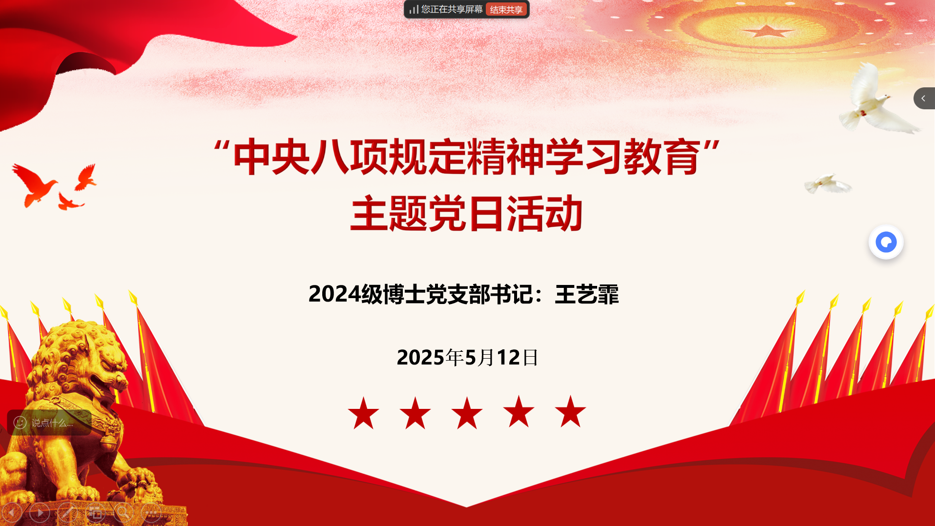 為深入貫徹中央八項規(guī)定精神學習教育,按照黨群辦公室的安排,2025年5月12?,沈陽生態(tài)所24級博士黨支部通過線上形式召開全體黨員?會,開展深入貫徹學習中央八項規(guī)定及其實施細則精神的學習教育活動,支部書記王藝霏主持會議。