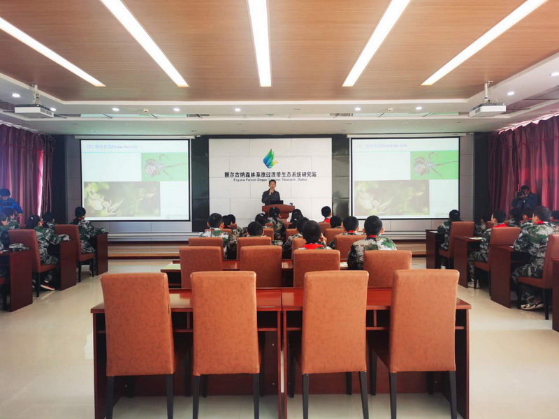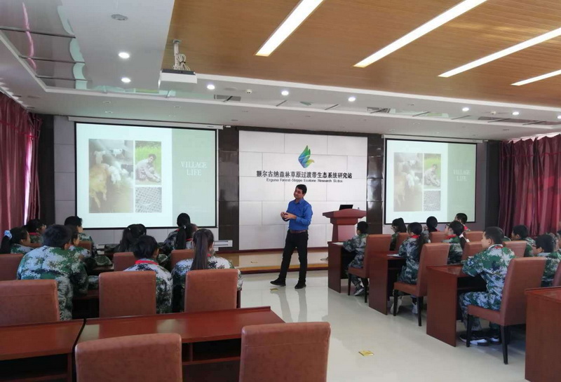 調(diào)研期間,調(diào)研組一行實地觀摩了正在舉辦的額爾古納站科普教育實踐活動。額爾古納市第三中學(xué)的86名學(xué)員分為兩批,分別參加了在額爾古納站標(biāo)本室進(jìn)行的植物標(biāo)本制作課程及在報告廳開展的專家講座。應(yīng)我站邀請,沈陽師范大學(xué)生命科學(xué)學(xué)院副院長鄭國教授在科普教育實踐活動中為學(xué)生們做了《草原小精靈-蜘蛛》的精彩報告,在我站工作的博士研究生郭佳同學(xué)為學(xué)員們講解并指導(dǎo)植物標(biāo)本的采集與制作方法,來站開展合作研究的巴基斯坦Faisalabad農(nóng)學(xué)院的Abid Ali博士與營員們也進(jìn)行了熱情洋溢的互動。小營員們聚精會神地聆聽老師們的講解,老師們不時地提出問題或者鼓勵營員們提問,與營員們互動熱烈。