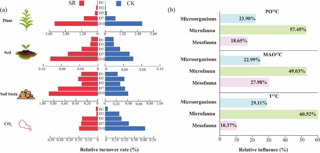 圖213C的相對轉(zhuǎn)化率以及土壤食物網(wǎng)各類群對碳轉(zhuǎn)化的相對貢獻