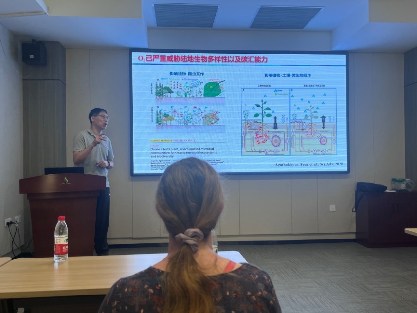 Felicity Hayes研究員以“Impacts of ozone on plants and ecosystems”為題,系統(tǒng)闡述了近十年來全球范圍內(nèi)臭氧污染對陸地植物及生態(tài)系統(tǒng)的綜合影響,重點解析了臭氧污染對植物逆境生理、光合固碳、生長及生物多樣性等的影響機制,同時基于生理生態(tài)過程的臭氧損傷評估模型,比較探討了不同植物功能型對臭氧響應(yīng)的敏感性,對于指導(dǎo)我國應(yīng)對當前臭氧污染的植物選育工作具有積極意義。