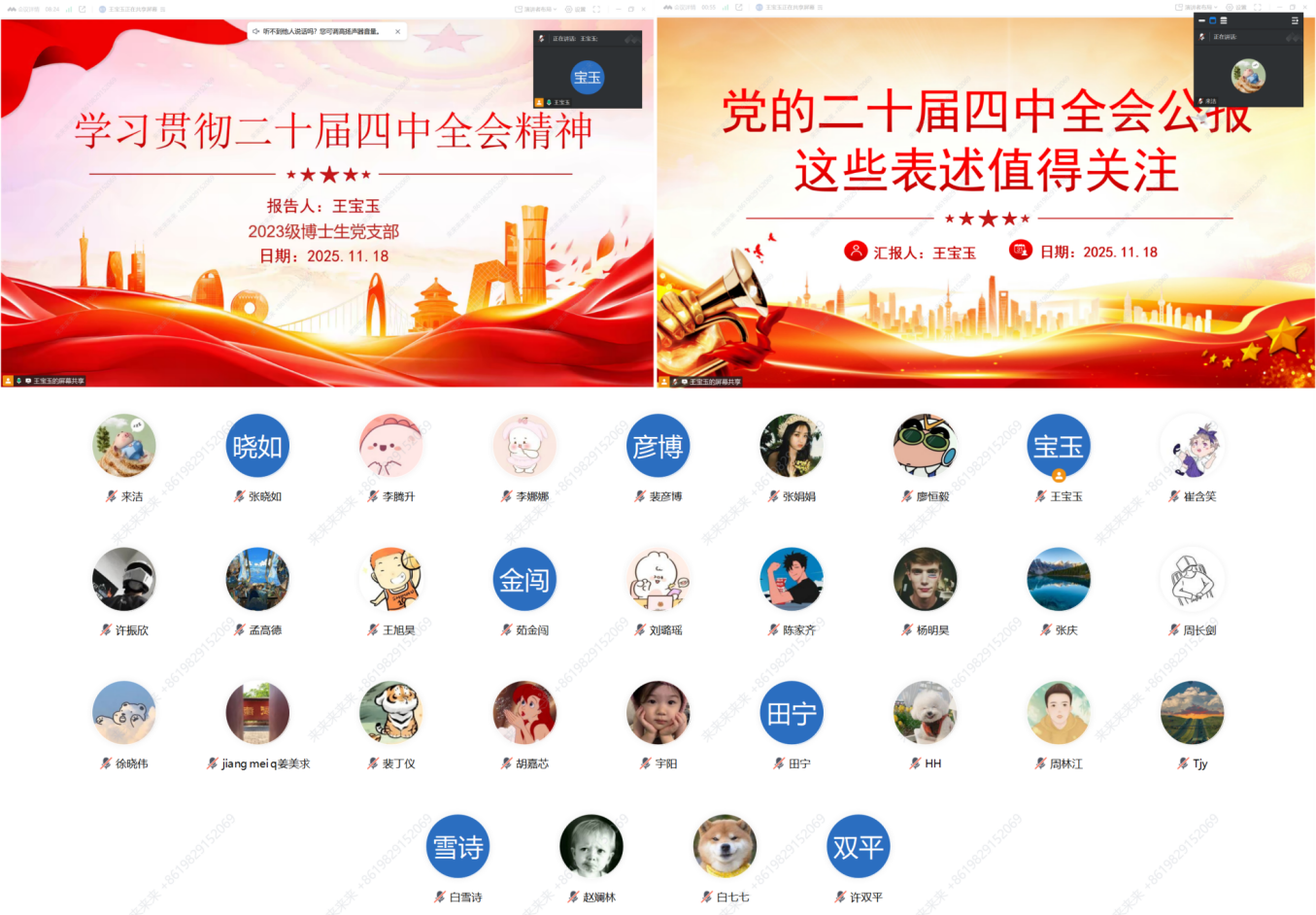為深入學(xué)習(xí)貫徹黨的二十屆四中全會精神,按照黨群辦公室的安排,2025年11?18?,沈陽?態(tài)所23級博?黨?部通過線上形式召開全體黨員?會,開展關(guān)于《中共中央關(guān)于制定國民經(jīng)濟和社會發(fā)展第十五個五年規(guī)劃的建議》和深入學(xué)習(xí)貫徹習(xí)近平總書記在黨的二十屆四中全會上的重要講話和全會精神的學(xué)習(xí),?部書記王寶?主持?部?會。