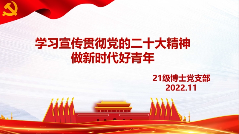 2021級(jí)博士黨支部于2022年11月14日召開(kāi)了學(xué)習(xí)黨的二十大精神線上會(huì)議,會(huì)議由支部書記白雪主持。支部成員從多個(gè)角度對(duì)黨的二十大精神進(jìn)行了學(xué)習(xí),黨支部組織委員顏詠雪作了學(xué)習(xí)黨的二十大精神報(bào)告。她深入淺出地解析了黨的二十大報(bào)告的深刻內(nèi)涵,并著重講解了與生態(tài)環(huán)境和文化自信相關(guān)的內(nèi)容,通過(guò)相關(guān)新聞報(bào)道、解析視頻與同學(xué)們共同學(xué)習(xí)。