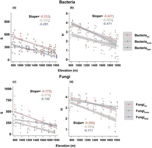 冠層葉際細(xì)菌和真菌沿長(zhǎng)白山海拔梯度變化趨勢(shì)