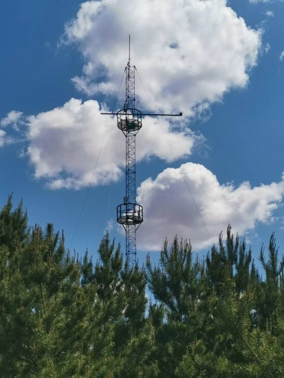 在大青溝站和章古臺萬畝林實驗基地建設(shè)了沙地樟子松防護林綜合觀測研究樣地,塔基冠層日光誘導(dǎo)葉綠素?zé)晒猓?/font>SIF)觀測研究樣地,在林分尺度上進行樹木生長、健康狀況及相關(guān)生理過程進行高精度動態(tài)監(jiān)測。觀測樣地均為100 m 100 m,塔高30 m,25 m平臺用于存放SIF設(shè)備,觀測直徑為93 m,觀測面積約為6789 m2。