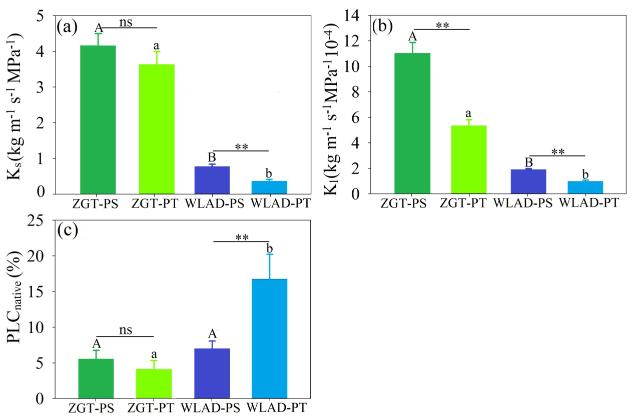 (1)具有木質(zhì)部正壓修復(fù)機(jī)制的樹(shù)種(槭樹(shù)和樺樹(shù))在休眠季表現(xiàn)出較高的可溶性糖含量,冬季氣穴化栓塞程度較低。(2)不具有木質(zhì)部正壓修復(fù)機(jī)制的樹(shù)種(楊樹(shù)),雖然在生長(zhǎng)季表現(xiàn)出較高的光合速率、組織NSC含量和徑向生長(zhǎng)...在較高緯度和高海拔的溫帶森林生態(tài)系統(tǒng)中,樹(shù)木越冬過(guò)程中頻繁發(fā)生的凍融交替可誘導(dǎo)木質(zhì)部氣穴化栓塞的產(chǎn)生,損傷樹(shù)木的水分傳輸功能。溫帶樹(shù)種進(jìn)化出不同的適應(yīng)性機(jī)制應(yīng)對(duì)凍融引起的冬季栓塞(winter embolism)...2021-12-01