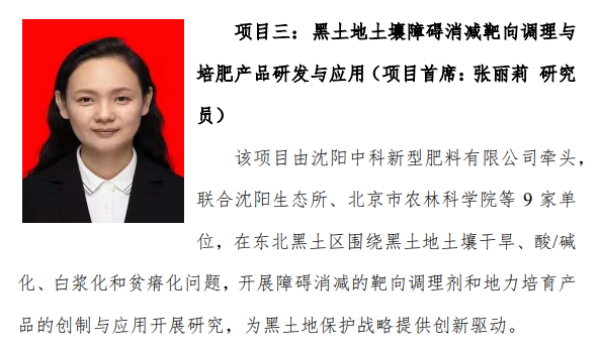 近日,科技部公布了2023年度國家重點研發(fā)計劃“黑土地保護與利用科技創(chuàng)新”重點專項評審結(jié)果,我組張麗莉研究員喜獲黑土專項重點研發(fā)計劃項目,為項目三--黑土地土壤障礙消減靶向調(diào)理與培肥產(chǎn)品研發(fā)與應用的項目首席。